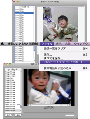 - 携帯電話から読込んだ画像をiPhotoへコピーできます。