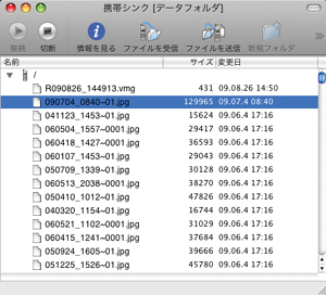 携帯電話の「データフォルダ」内のファイルをMacで読込み、書込み。