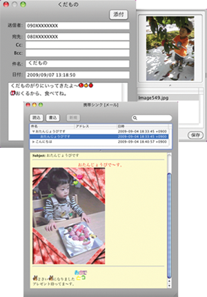 携帯電話の送受信メールをMacに保存。